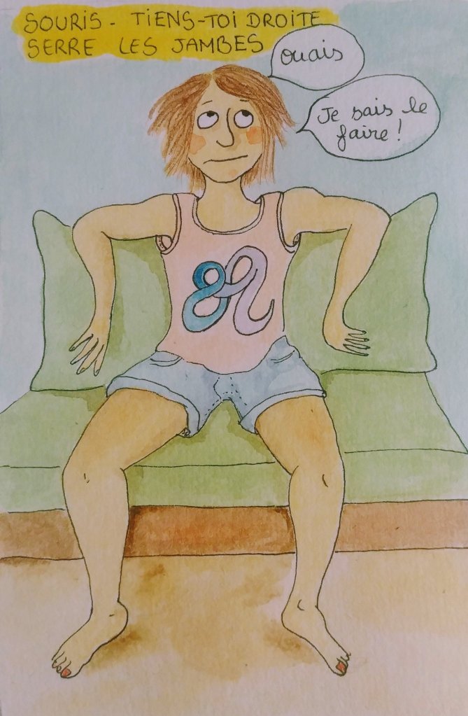 Bêtement, j’écoute l’Esprit maternel. Je le gronde. Mon hémisphère (il était où celui-là ?) bienveillant boude. C’est la guerre. J’en rajoute une couche. Tout le monde est fâché. Sacrée soirée comme dirait l’autre, pas le temps de dessiner par dessus le marché. Mon hémisphère bienveillant rame pour réparer la soirée, tente des excuses et des explications, de l’humour aussi. Mais bon. Le remords me vrille, je broie du noir. A ce rythme-là, il va rater son bac et ce sera ma faute (je déconne, je n’ai pas pensé ça). On passe à autre chose.