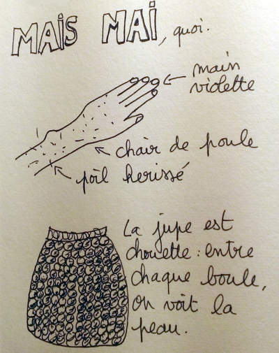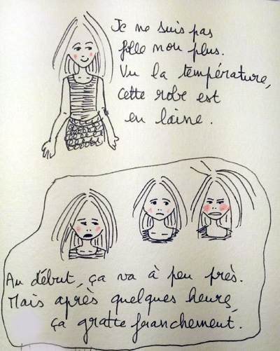 Je voudrais remercier les créateurs qui inventent d’irrésistibles et importables robes. Je voudrais également remercier les fabricants de ces collants qui ont le bon goût d’être attirés par mes genoux. Et je remercie aussi la météo, tellement prompte à ressembler à la vraie vie : il y a de belles éclaircies.