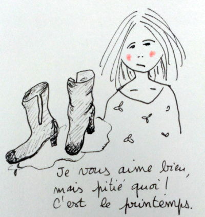 Ce matin sur mon tapis de yoga, je me demandais s’il fallait mettre un terme à cette phase blogante, j’hésitais entre samedi et dimanche pour vous l’annoncer. Ou carrément ce matin. Bye-bye j’arrête, je suis épuisée du ciboulot, je ne comprends plus ce qu’on me dit au boulot. En fin de journée je soupçonne mon crâne de vouloir expulser mes yeux. Je pourrais utiliser ce temps libéré pour consacrer mon vide intérieur. Ce qui m’a donné envie d’écrire sur ça. Et puis sont venues d’autres idées. Et puis les vacances approchent. J’irai marcher avec mes pieds sur les chemins de montagne. Je n’essaierai même pas de dessiner ou peindre le paysage. Je serai dans le paysage.