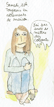 Sartre est-il le short de la littérature me demandais-je en dessinant cette page. Adolescente, j’avais pioché Maria de Cavanna dans la bibliothèque parentale ; vers le début du roman, il écrit « C’est con une ado, ça découvre Jean-Paul Sartre. » (je cite ma mémoire qui potentiellement flanche). Pile dans la cible, je me suis sentie affreusement vexée et j’ai refermé le livre. Bye Bye Cavanna, jamais plus je ne l’ai lu.